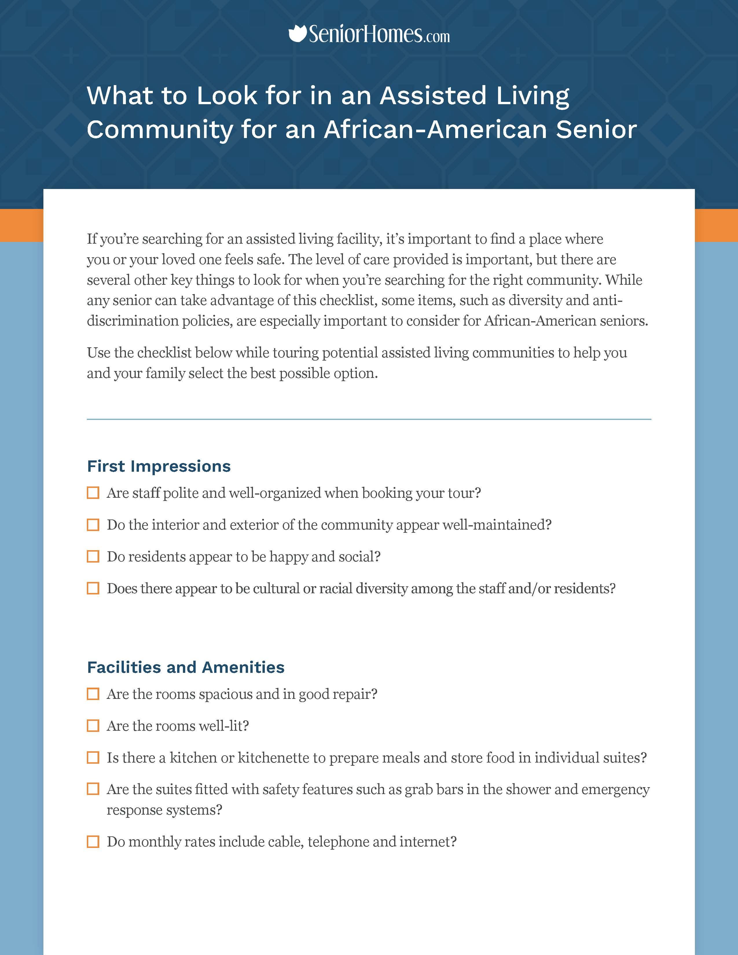 Downloadable Checklist: What To Look for in an Assisted Living Community for an Older African American Loved One