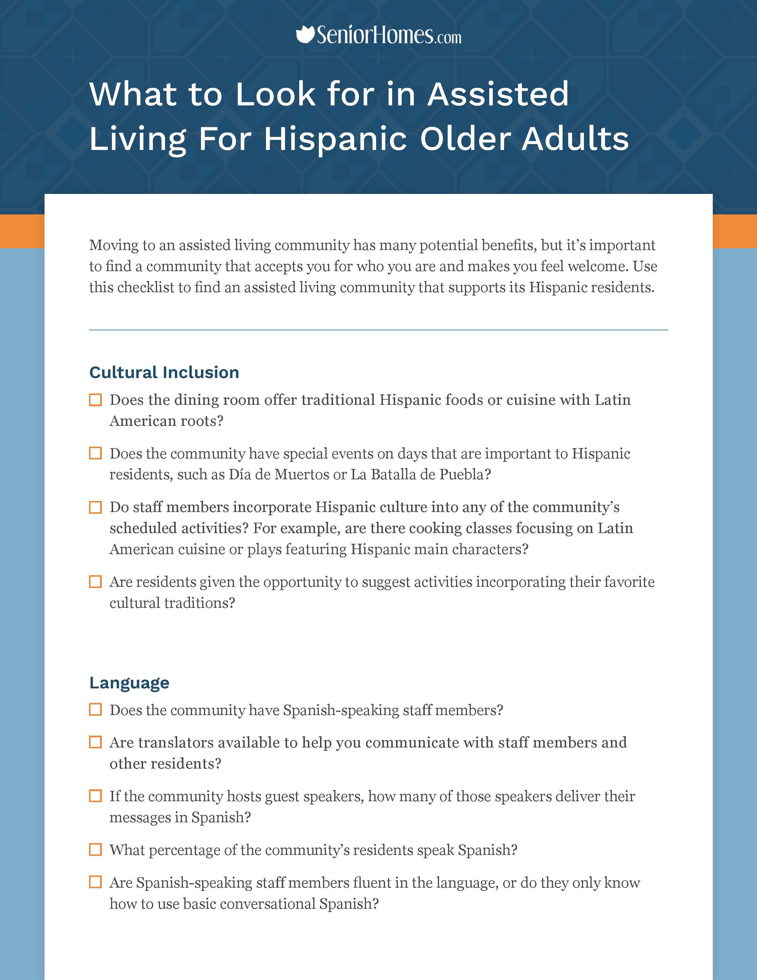 What To Look For In an Assisted Living Community for a Hispanic Loved One: A Checklist